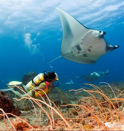 著名潜点“德国水道”,魔鬼鱼的乐园。这里可以观赏到成群的魟鱼洄游于水道之间。来到此地,可发现高度落差的海墙上竟生长了各式各样的珊瑚及海底七彩植物,以及各式的热带鱼群洄游期间,你绝对无法相信已置身在一个崖壁深海的绝佳天景。