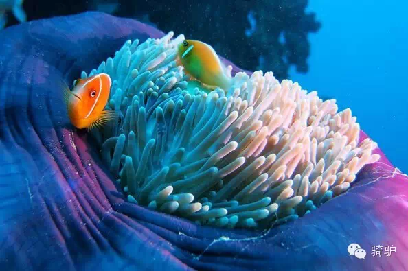 珊瑚茂盛,很多小丑鱼,还有鲨鱼