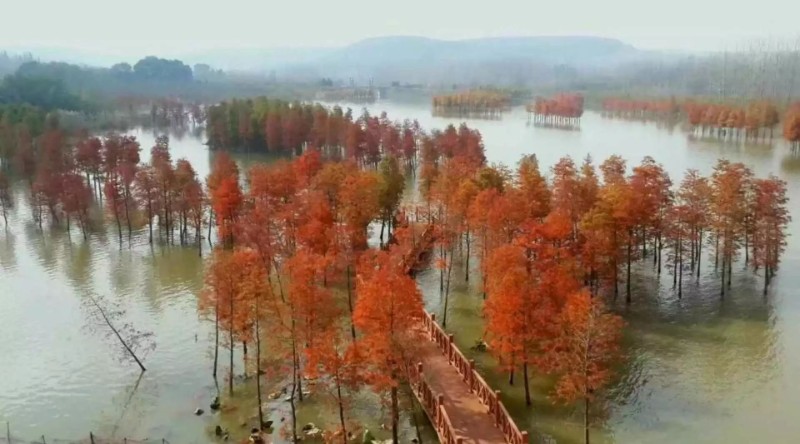 循着红叶的指引往深处走,天泉湖水便撞进了眼眸。那蓝是纯粹的、不含一丝杂质的湛蓝,像被秋水洗过的天空,又像凝结的宝石,静静地躺在群山怀抱里。红杉林临水而立,阳光懒懒散散的撒在林间,枝叶间漏下的光斑在水面跳跃,引得林中飞鸟振翅,翅尖掠过水面时,惊起一圈圈涟漪,连带着湖底的鱼儿也跃出水面,银白的身影在蓝与红的交织中一闪而过,便又坠回水中,只留下水面的波纹,载着秋光轻轻摇晃。