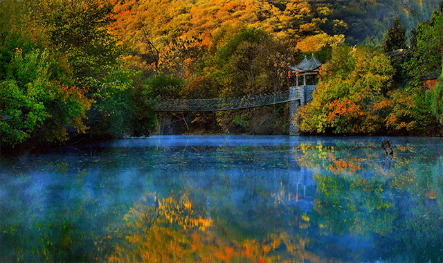 我站在这片秋景里,看红叶燃烧,听禅钟回响,任水雾沾湿衣角,忽然懂得了“深恋”二字的含义。不是一时的惊艳,是秋阳、红叶、碧水、飞鸟、禅钟与古树共同织就的梦境,是踏入这里时,便想把心留在此处的眷恋——铁山寺的秋,是写在时光里的诗,是刻在心上的恋,看过一次,便再也无法忘记。