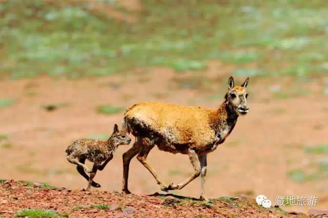 刚出生二三十分钟的小藏羚羊已经可以跟着妈妈奔跑了