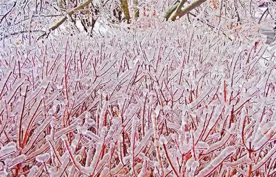 冻雨后,水被凝固在叶面上形成的冰叶。。。