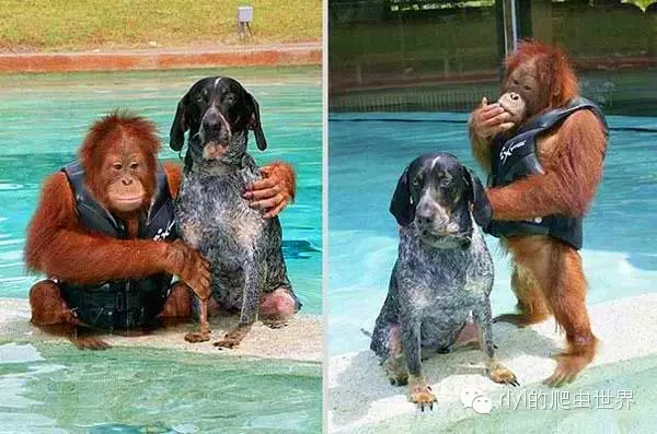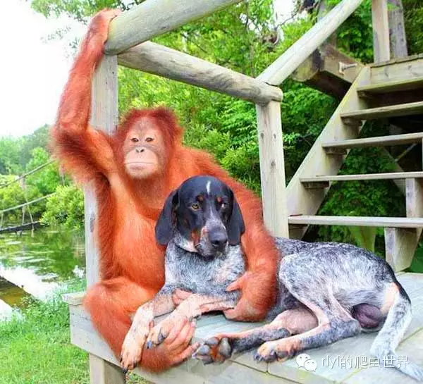猩猩和它最好的朋友布鲁泰克猎犬。