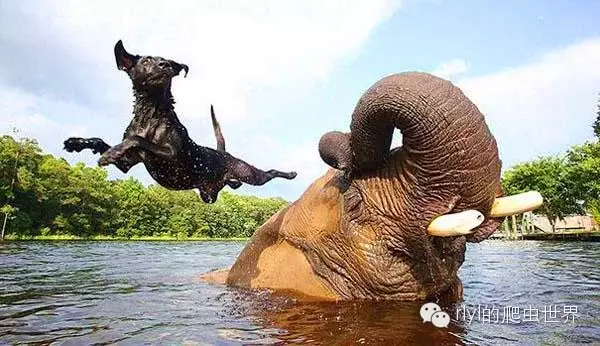 它叫泡沫,是一只非洲象,它最好的朋友是贝拉,是一只黑色的拉布拉多犬。