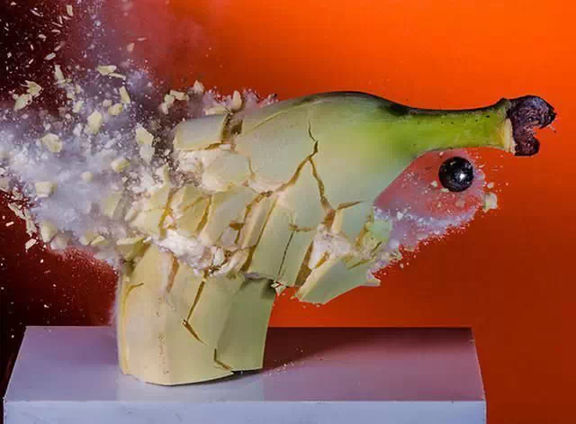 23.被液态氮冻住的香蕉,受到小球的轻轻一击