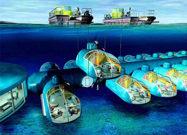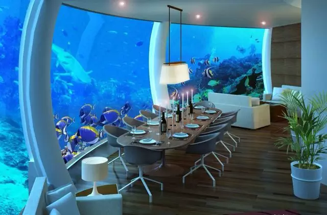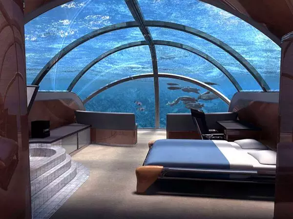 位于斐济群岛共和国的“海神海底度假村”(The Poseidon Undersea Resort )是目前世界上第一个海底度假村,游客可以在距离海平面40英尺(12米)以下的奢华环境中度过浪漫优雅的假日。