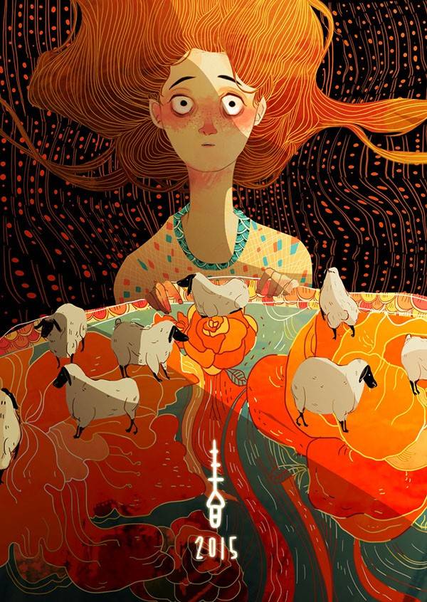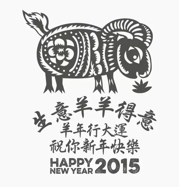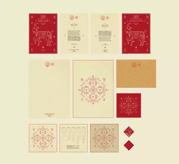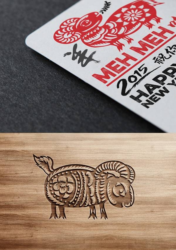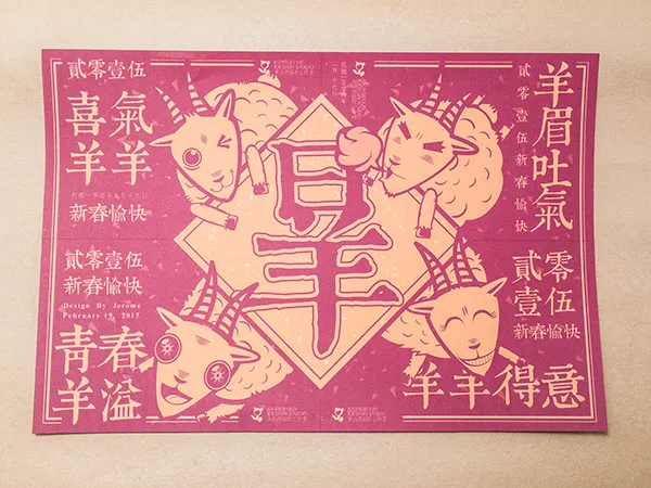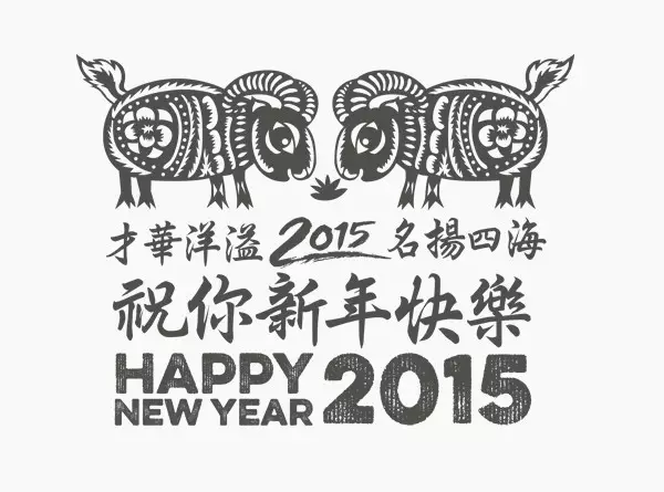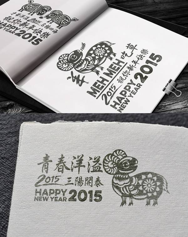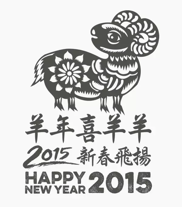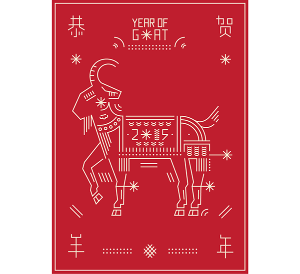 由国外设计师制作的中国羊年主题的贺卡图形,比起中国传统的生肖图形,这些图形的样式与配色似乎更加不受拘束,别具一格。