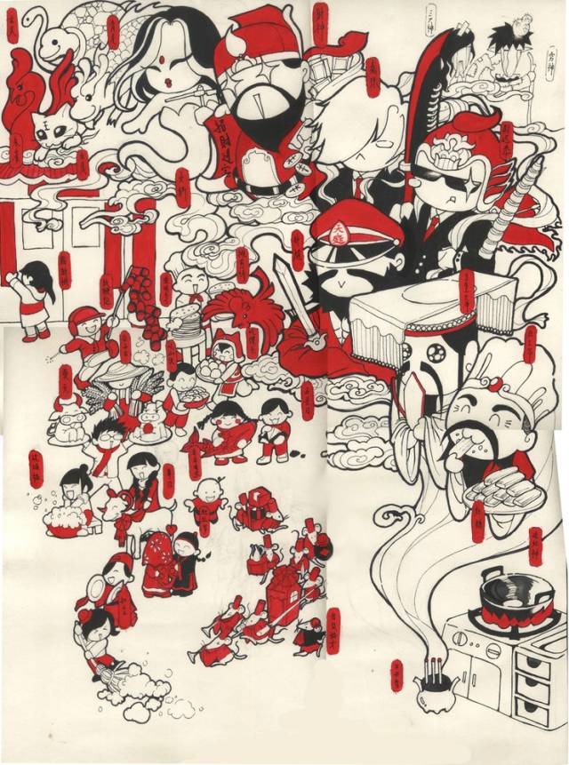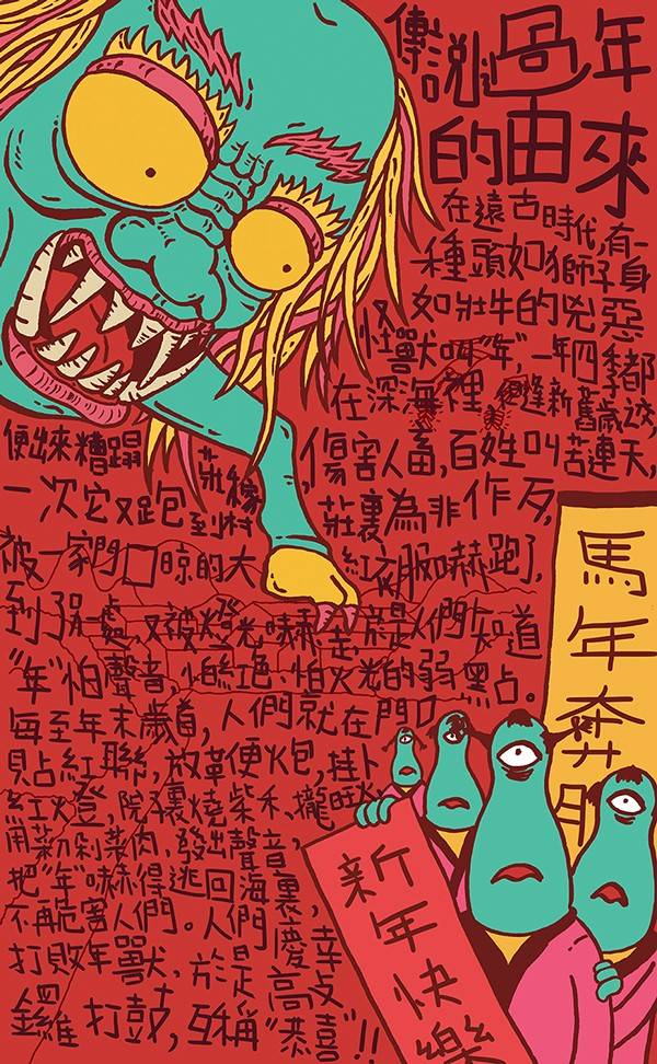 年是啥?这种涂鸦的形式来阐述是不是比冰冷的百度百科更加有趣味呢?浓浓的年味似乎在这些纯萌的怪物中散发出来……