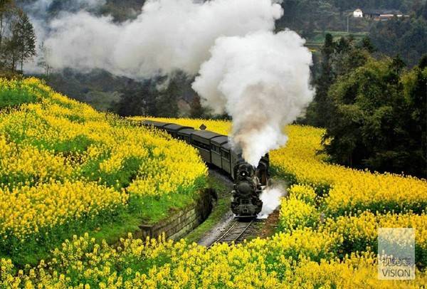 开往春天的火车,从油菜花田穿过,我已经忘了要去何方,此时,我只想沿途欣赏。