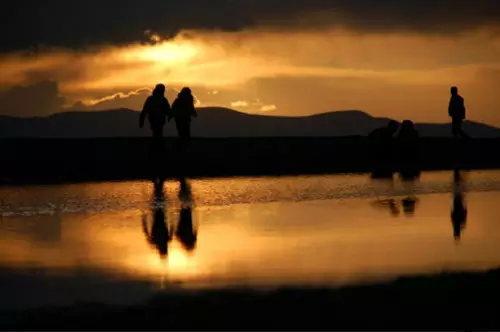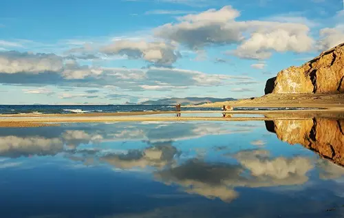 相传,美丽动人的纳木错女神与远处静默的念青唐古拉是一对生死相依的爱人,纳木错的蓝是用唐古拉山峰顶最真挚纯洁的雪水滋润净化而成。在千年的变幻中,在万年的颠覆后,他们仍然相拥在这高原之巅。岸边的合掌石就是唐古拉与纳木错的化身,象征着他们矢志不渝的爱情。