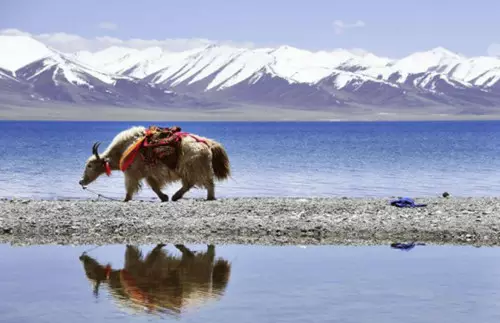雪水化作纯洁的乳汁,滋润着广阔无垠的湖滨草原,孕育出更多的生命。夏初时节,成群的野鸭飞来栖息,在这里繁衍后代;秋末冬初,牧民也会在风雪来之前,把牛羊赶到这里,抵御风寒。
